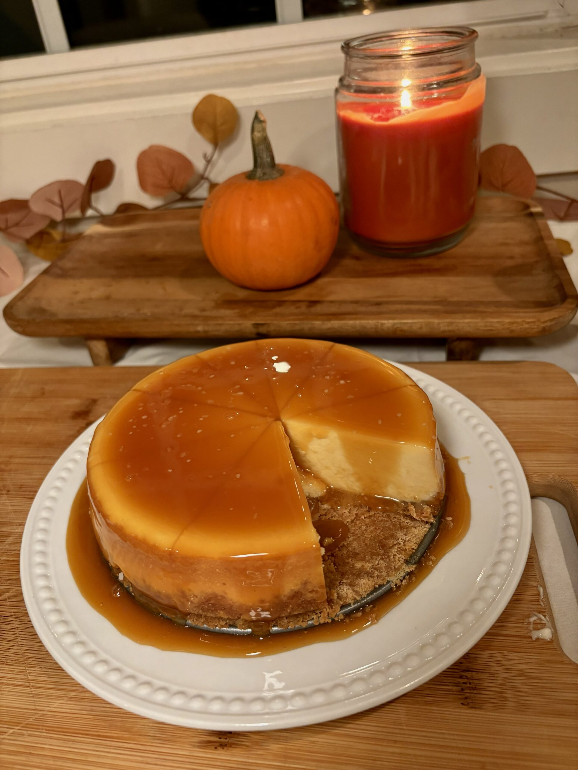 1. Just before serving, drizzle generously with caramel sauce and sprinkle with flaky sea salt. Slice, serve, and enjoy that perfect balance of creamy, sweet, and salty!
