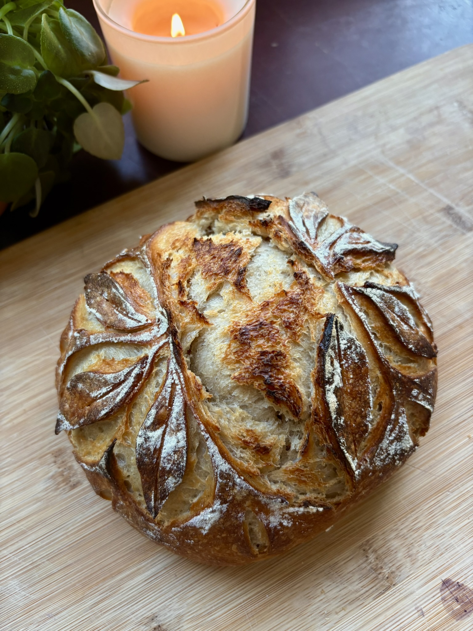 - Enjoy – Once bread is FULLY cooled, cut into it and enjoy a fresh slice of sourdough bread!